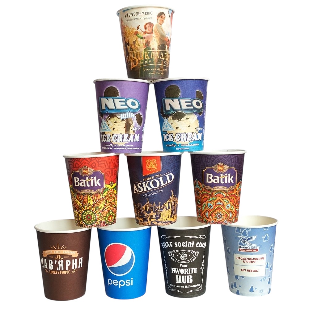 Стакан бумажный 250 мл однослойный с индивидуальным дизайном