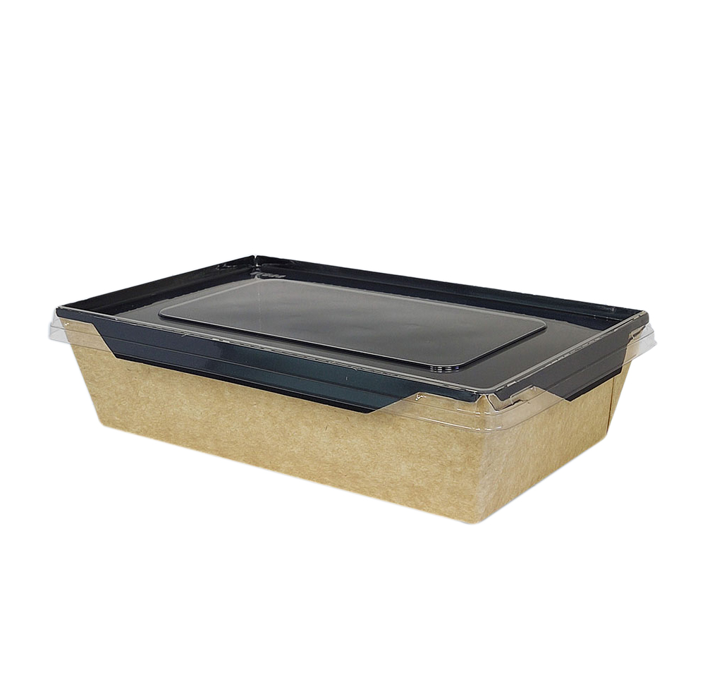 Контейнер для еды с прозрачной крышкой 1000 мл крафт-чёрный ламинированный. 200 шт/ящ